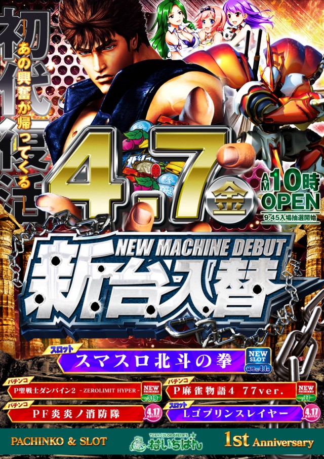 4月7⃣日新台オープン!!【スマスロ】北斗の拳登場!!