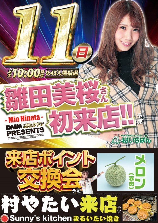 11日(日)応援女子来店!+ポイント交換会!+村やたい!