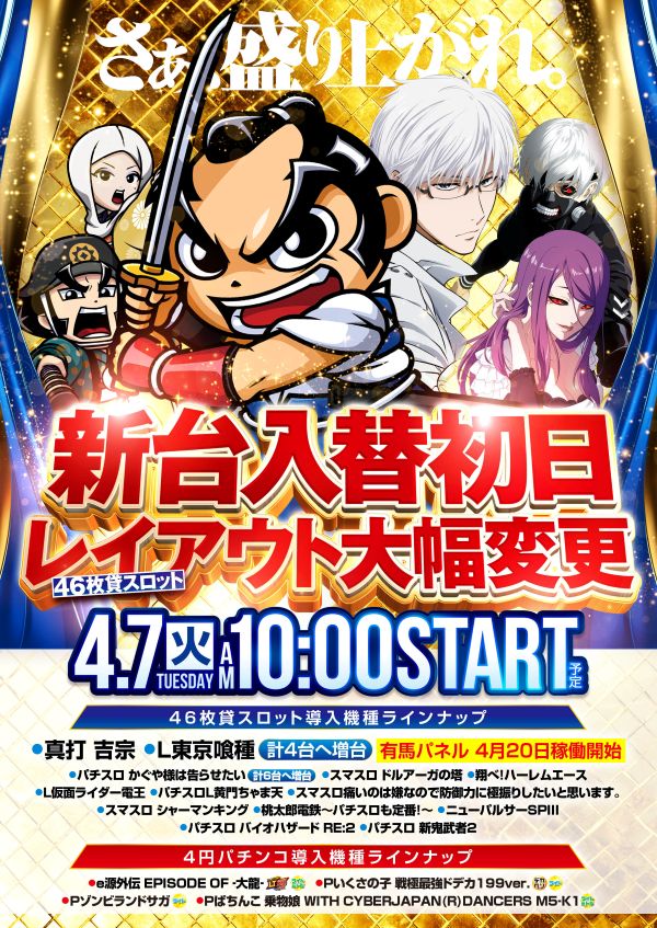 4月7日(火)新台入替初日 『初陣狼煙』~ただいま新章へ~