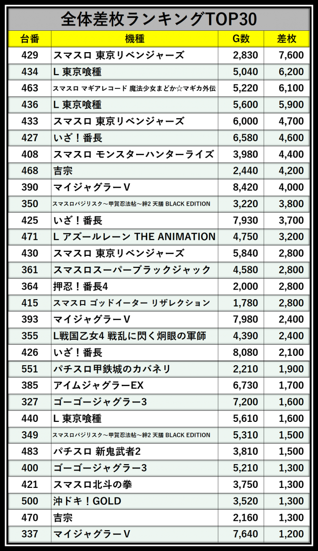 その結果の中から、ぱちタウンが注目すべきポイントを厳選してユーザーにお届け!プレイヤーが楽しんだ一日を下記データにて振り返ってみて欲しい。
