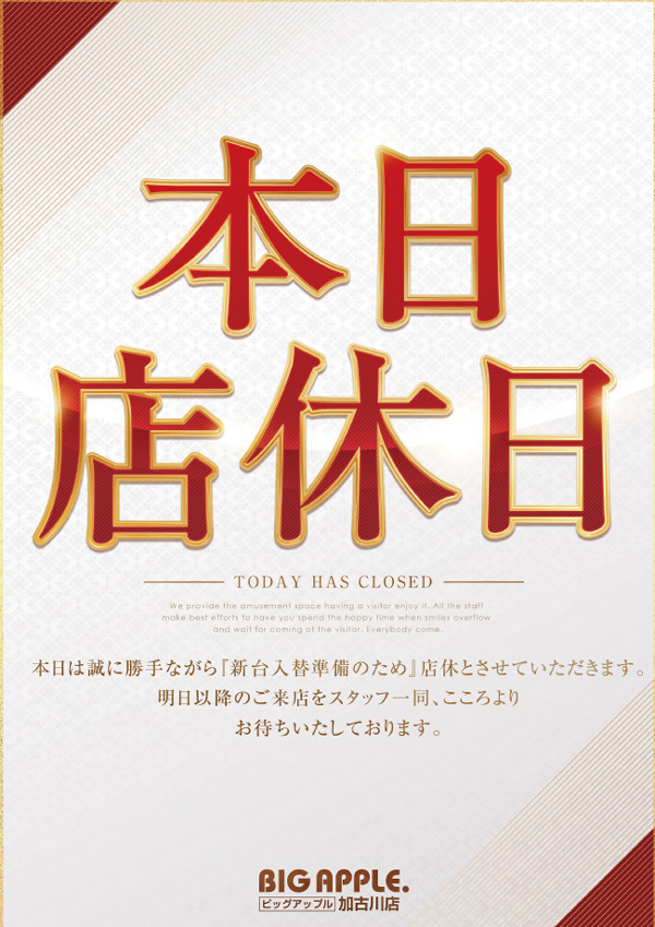 新台入替前にお休みを頂きます 。 |