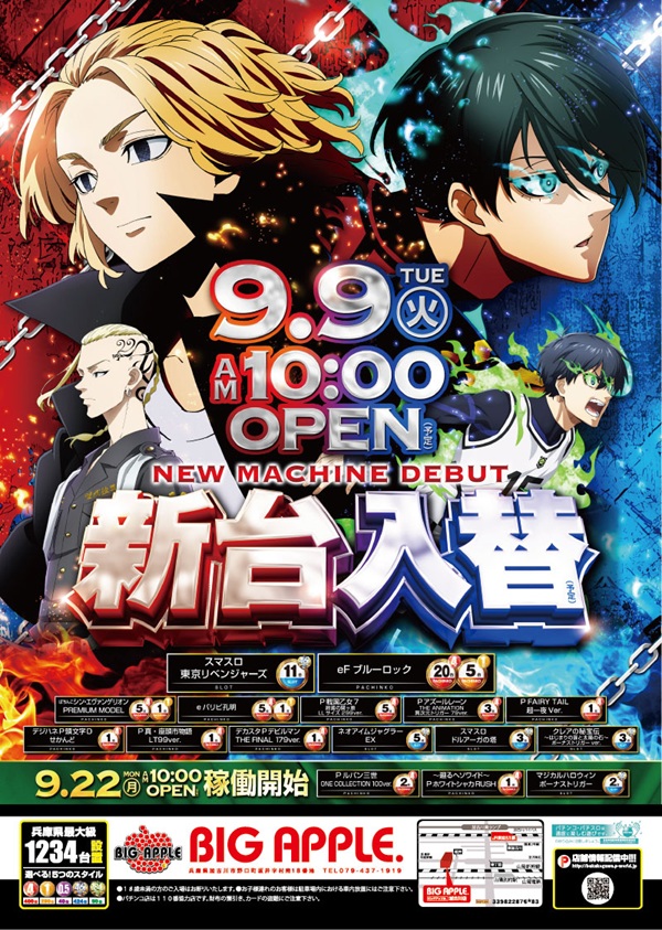 9月22日ビッグアップル.加古川の新台稼働開始🍎