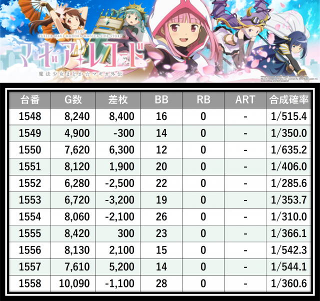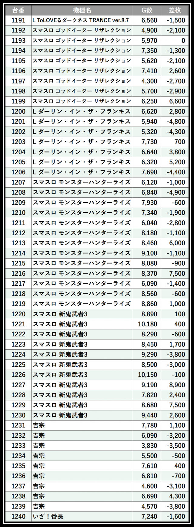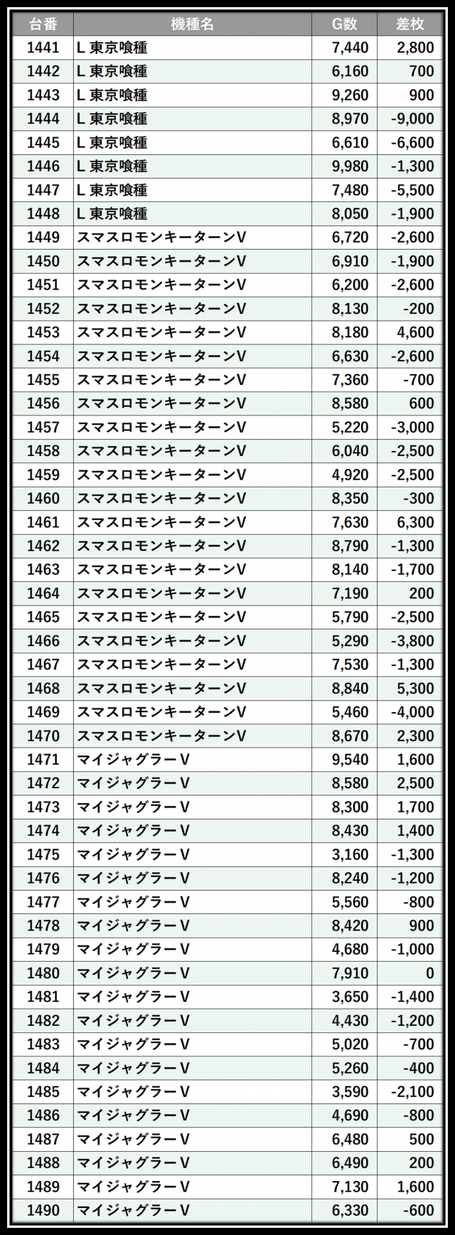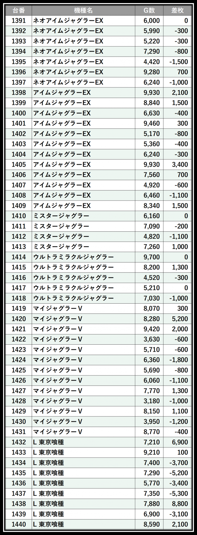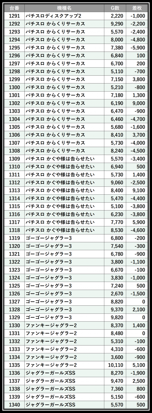 ※差枚数順に掲載しています