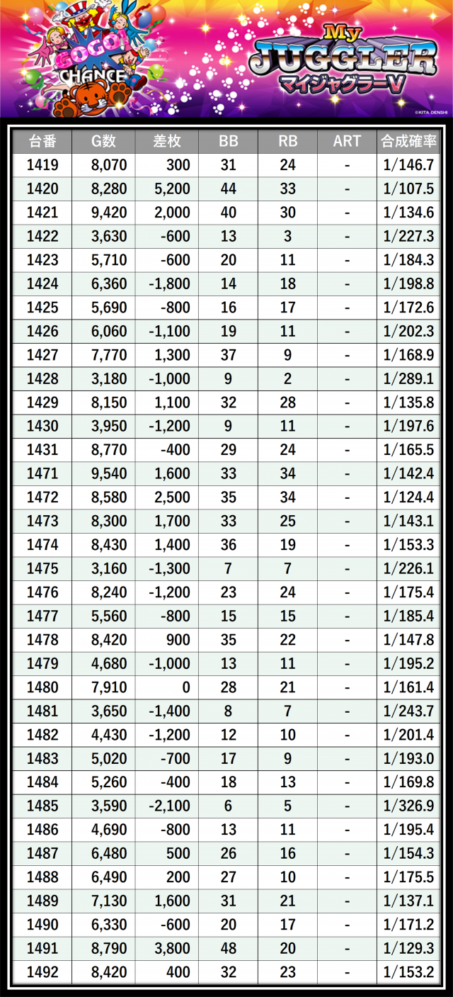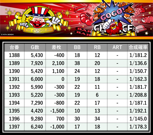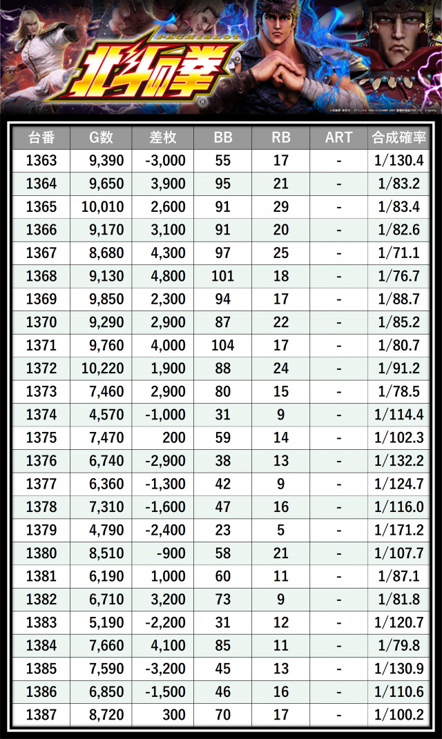 その結果の中から、ぱちタウンが注目すべきポイントを厳選してユーザーにお届け!プレイヤーが楽しんだ一日を下記データにて振り返ってみて欲しい。