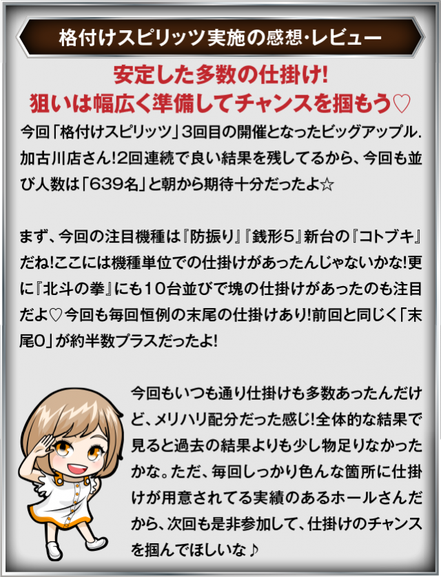 10月25日(土) ビッグアップル.加古川にて、DMMぱちタウンの「格付けスピリッツ」を実施。