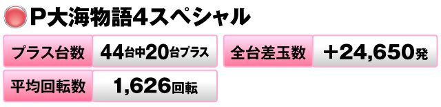 44台中20台がプラスで全台差玉数は+24,650発だった。