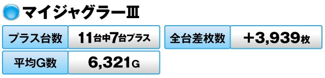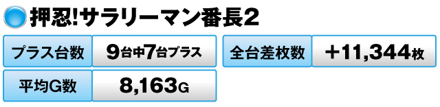 9台中7台がプラスで全台差枚数は+11,344枚、平均G数は8,163Gだった。