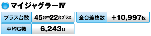 45台中22台がプラスで全台差枚数は+10,997枚をマークした。