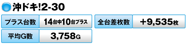 14台中10台がプラスで全台差枚数は+9,535枚だった。