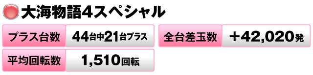 44台中21台がプラスで全台差玉数は+42,020発を記録した。