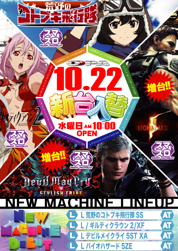 本日 10月22日(水) 新台入替 朝10時開店🌈🌈🌈🌈🌈