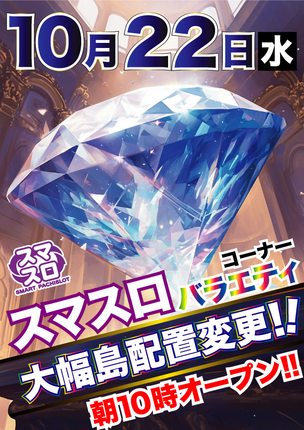 本日 10月22日(水) 新台入替 朝10時開店🌈🌈🌈🌈🌈