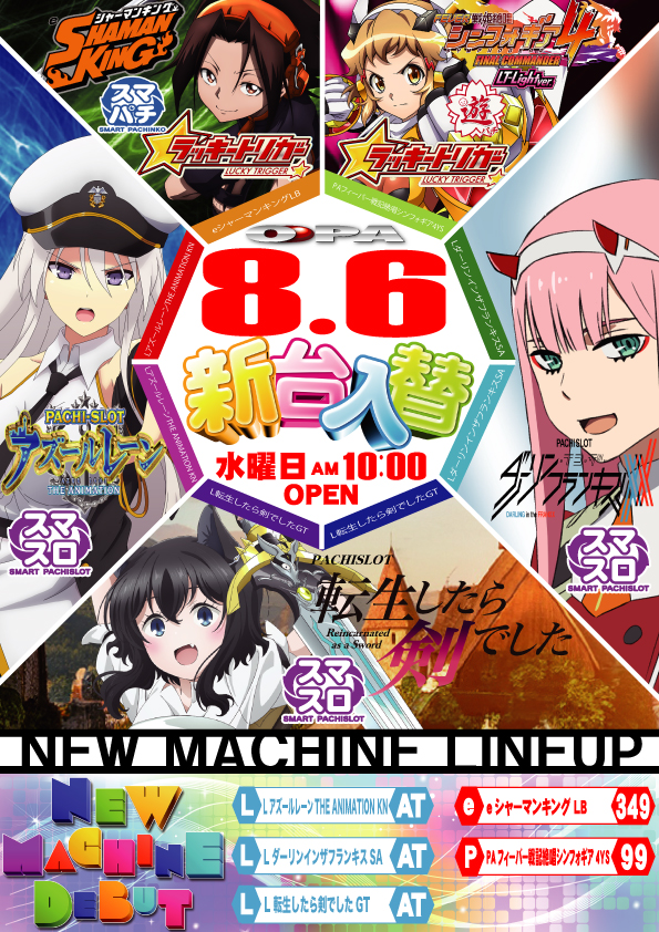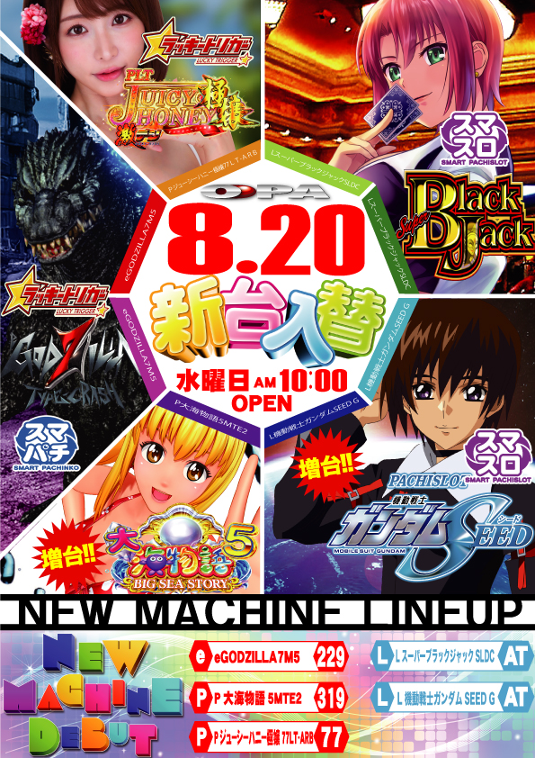 本日 8月20日(水) 新台入替 朝10時開店🌈🌈🌈🌈🌈
