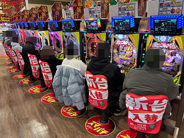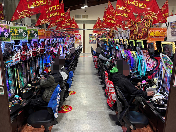 店内では貸し玉料金を問わず様々な機種で、心ゆくまで楽しむプレイヤーの姿が見られた。