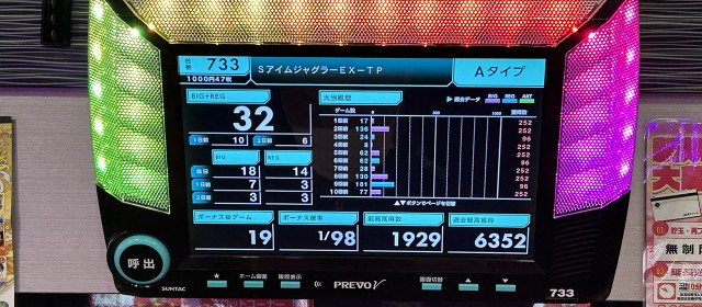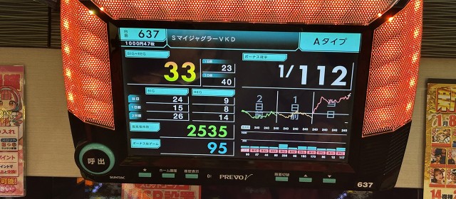 スマスロに匹敵したのがジャグラーシリーズ。『マイジャグラーⅤ』『ゴーゴージャグラー3』『アイムジャグラーEX』と、いずれも30を超えるボーナス回数の台が見受けられた。