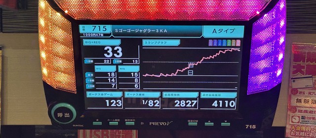 次の項から、当日収めた写真から[1000円/47枚]スロ・4パチの詳細を追っていく。
