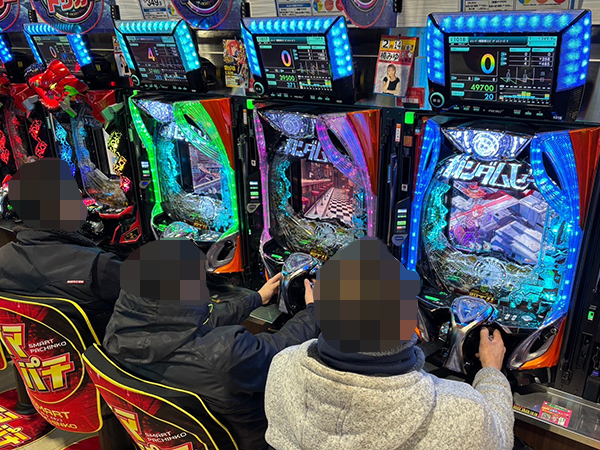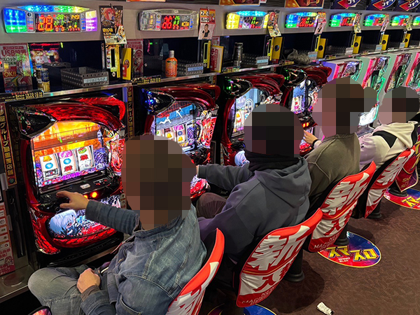 取材時は既に多くのプレイヤーが集結し、パチンコ・パチスロを問わずにぎやかな状況となっていた。