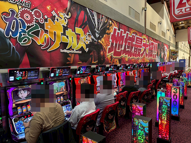 パチスロコーナーをみてみると、『パチスロ からくりサーカス』などのスマスロがにぎわっていました!