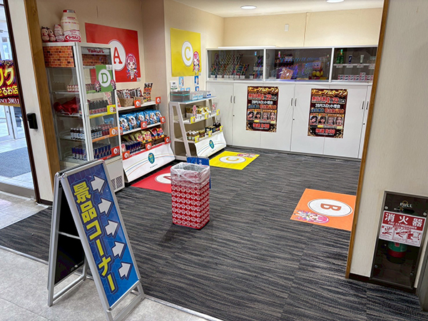 景品コーナーは豊富な品揃えで、お菓子やドリンク類など様々なアイテムが用意されていた。