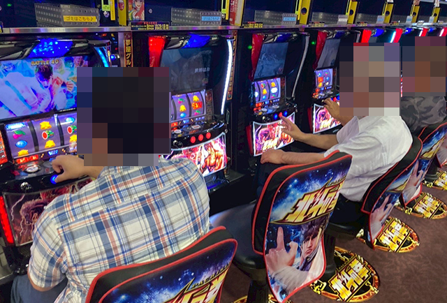 笑顔で遊技をおこなうプレイヤーがおり、明るい雰囲気となっていた「スマスロ北斗の拳」。
