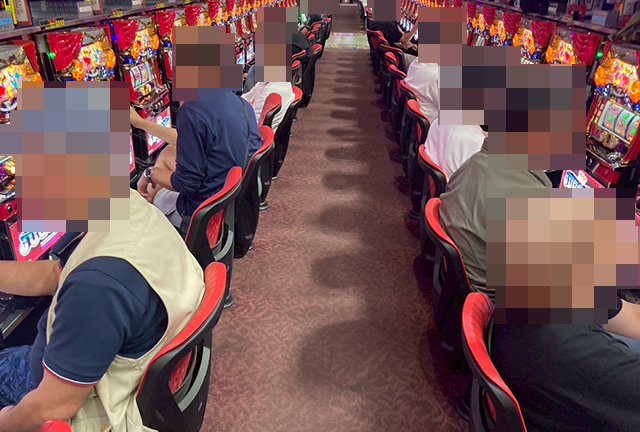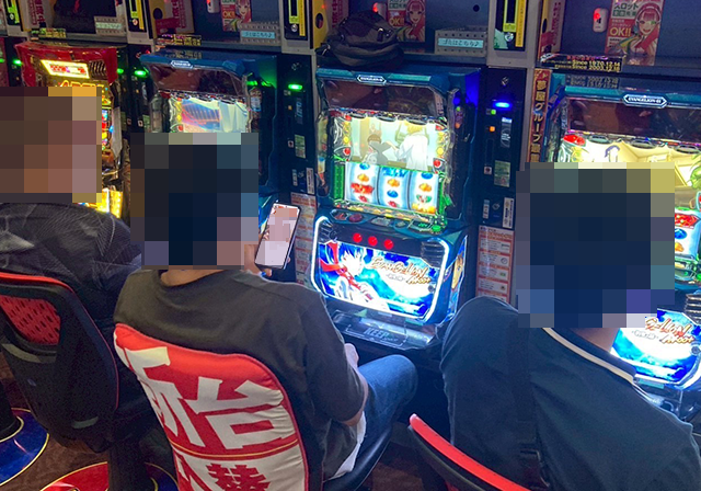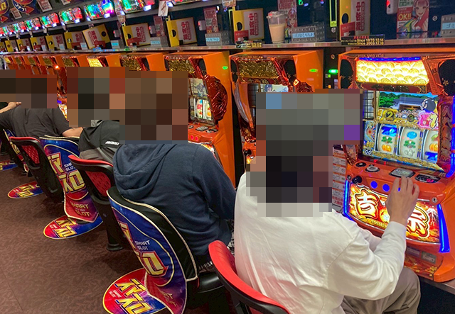 パチスロをみると、AT機やボーナスタイプなど、さまざまな機種が楽しまれていた。
