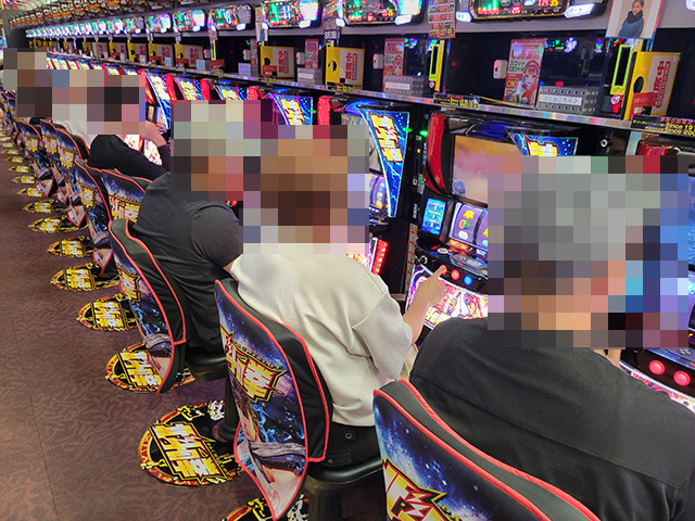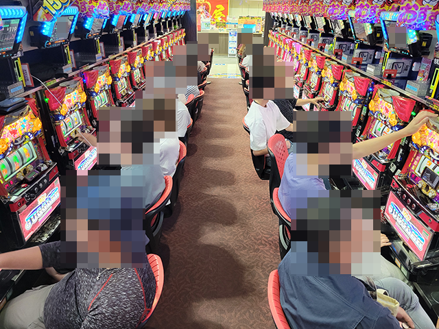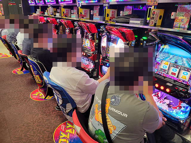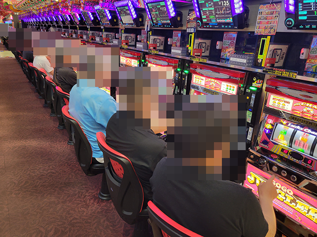 ジャグラーシリーズにて、多くのプレイヤーが楽しそうに遊技中。
