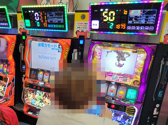 取材時は、「パチスロ からくりサーカス」に8,000pt超、「スマスロ北斗の拳」と「L主役は銭形4」に5,000pt超の台アリ。