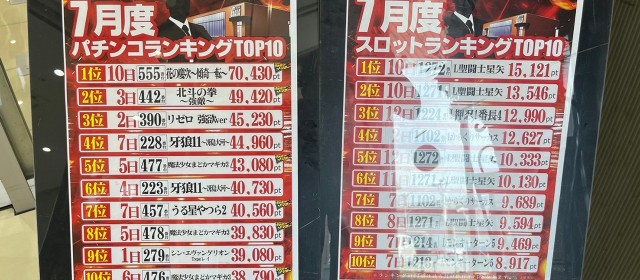 その中ではハイスコア順に挙げていくと、『スマスロ北斗の拳』『パチスロ からくりサーカス』共に+7,500枚弱の台を輩出し、前者では+4,100枚超&+3,700枚弱&+2,800枚超が1台ずつとシマ全体に大きな熱気が感じられた。