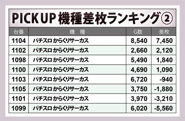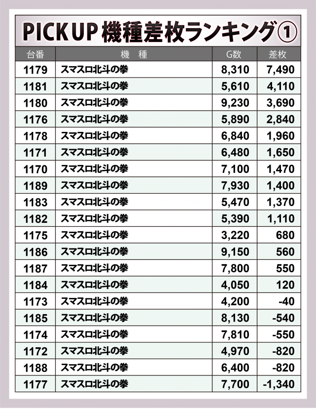 ※差枚数順に掲載しています。
