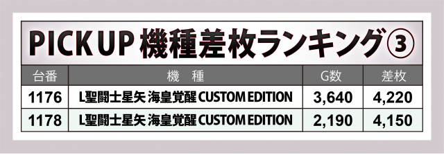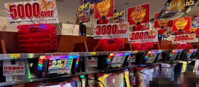 次項で挙げる3機種以外のハイスコアとしては、『スマスロ ゴッドイーター リザレクション』の+7,800枚超、『パチスロ かぐや様は告らせたい』では+6,300枚超・+5,000枚弱が1台ずつ、『Lパチスロ炎炎ノ消防隊』の+6,100枚超、『スマスロ ゲゲゲの鬼太郎 覚醒』では+5,800枚弱、『スロット Re:ゼロから始める異世界生活 season2』の+5,100枚超・+4,100枚弱が1台ずつと、同店ではおなじみのラインナップが実力を発揮した。