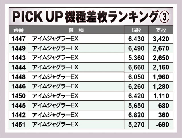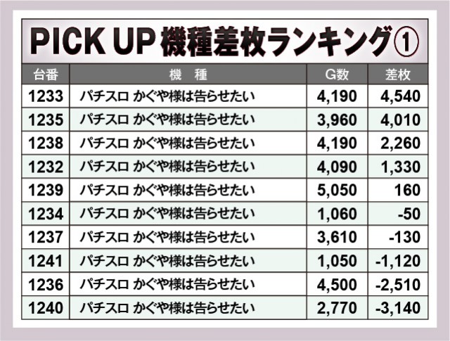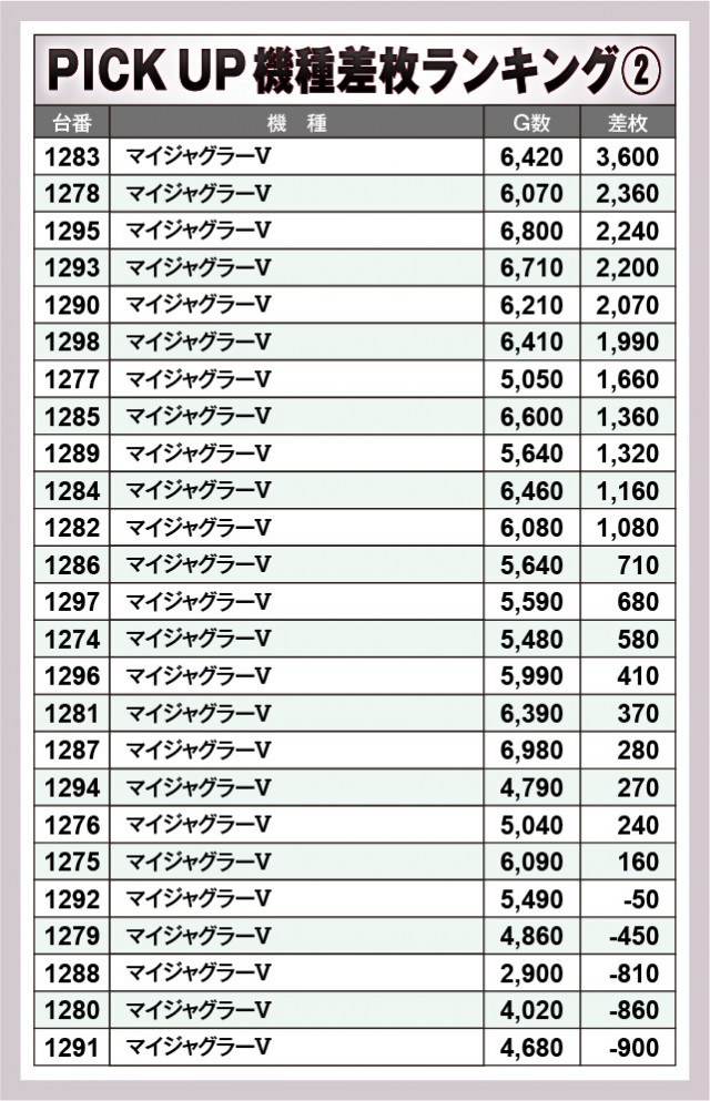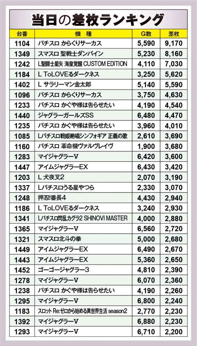 ※差枚数順に掲載しています。
