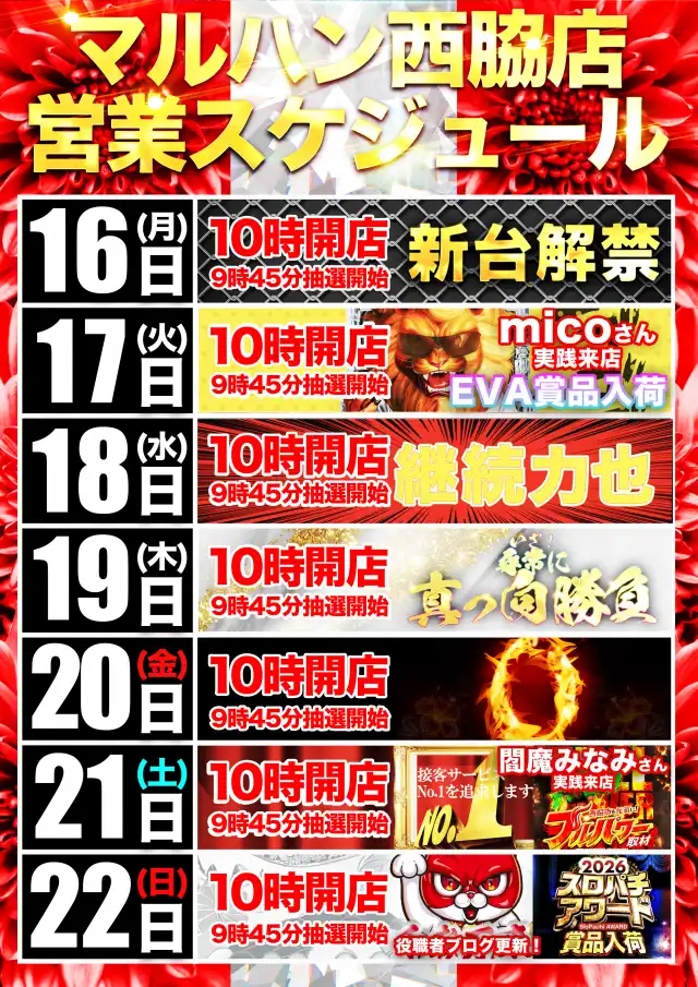 マルハン西脇店の店舗からのお知らせ