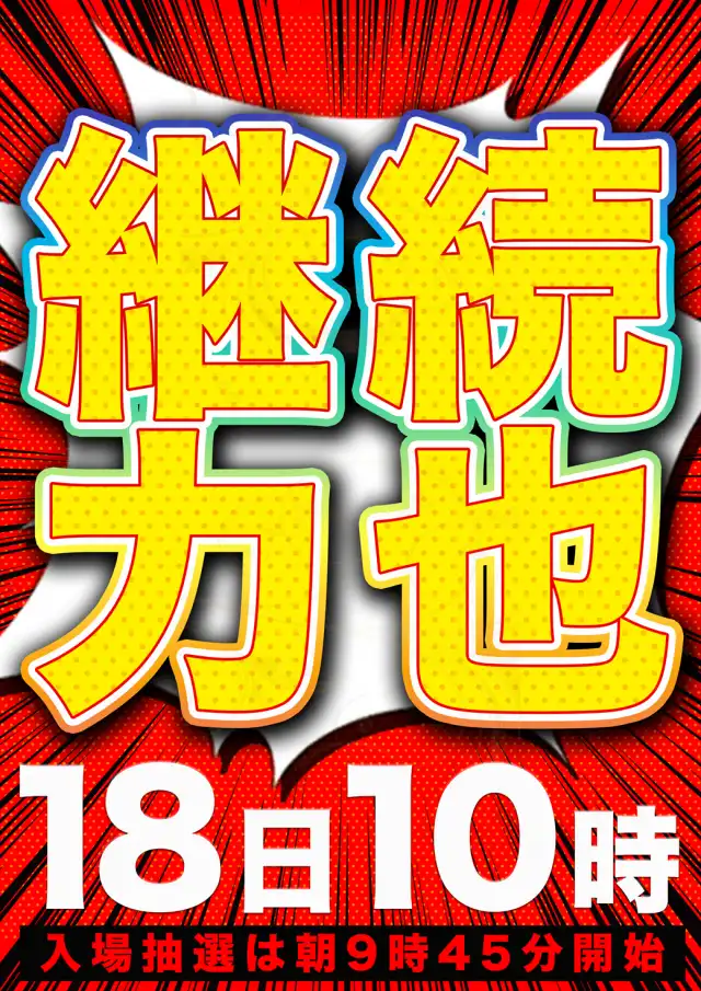 3月18日(水)継続力也 10時開店!!