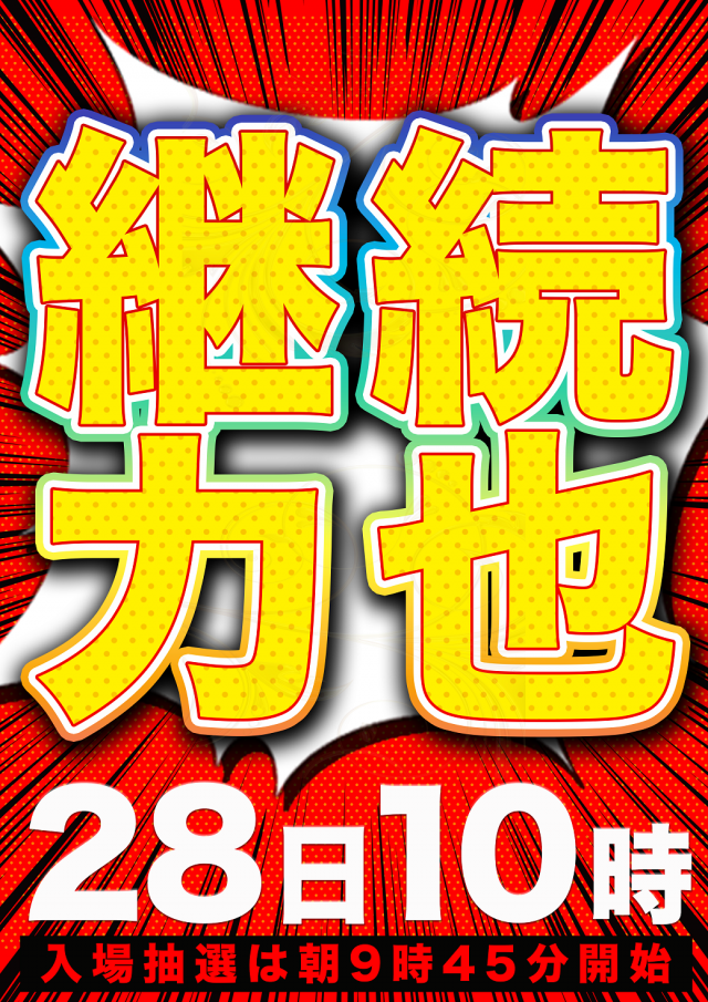 抽選開始時間→9時45分 再集合時間→9時55分 入場時間→10時00分 |