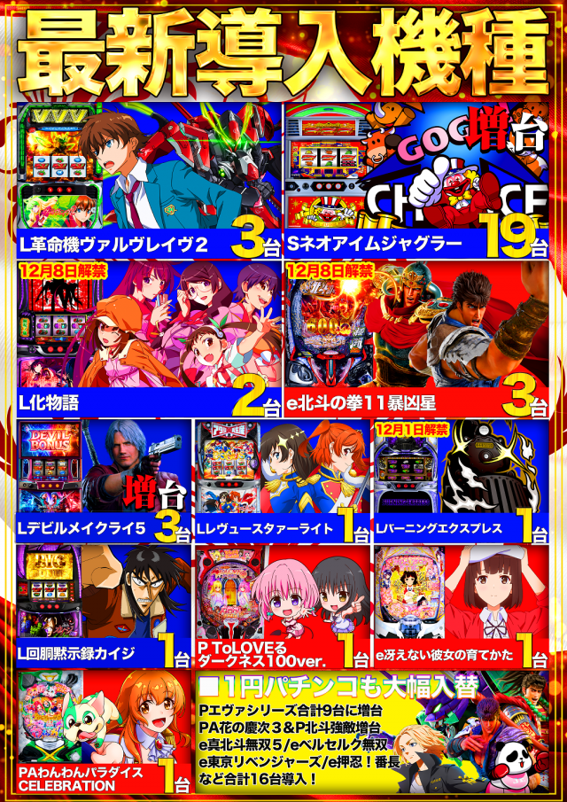 12月3日(水) 10時開店!☆最新機種導入済☆