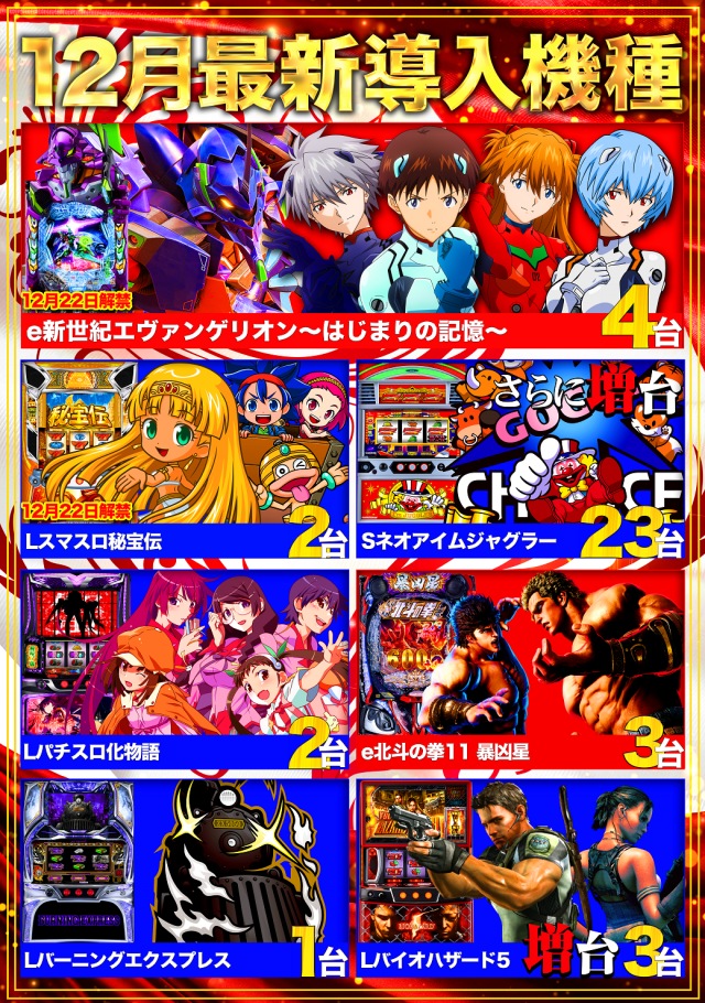 12月23日(火)eエヴァ17&L秘宝伝 2機種6台解禁済!