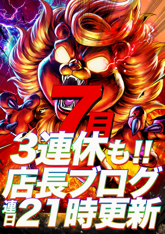 7月21日(月)3連休も!店長ブログ更新!10時開店☆