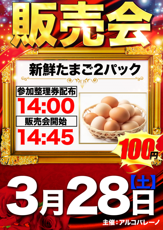 3月28日(土)継続力也!10時開店!!