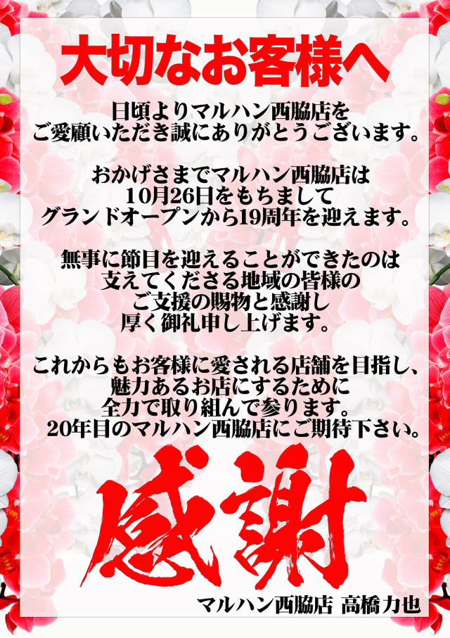 【19周年】10月26日(日) ~おかげさまで19周年~
