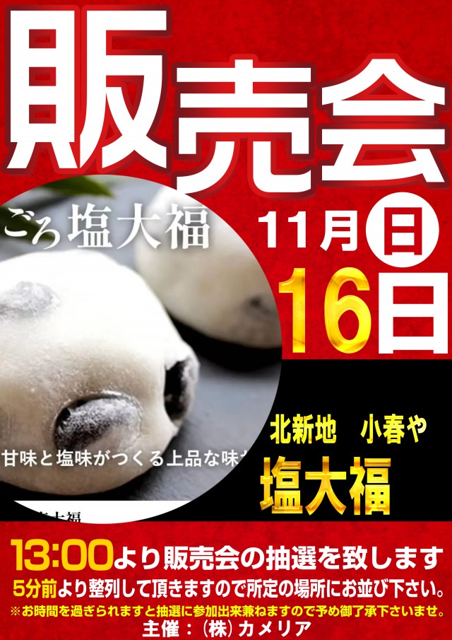 11月16日(日)【北新地小春や塩大福販売会開催予定】