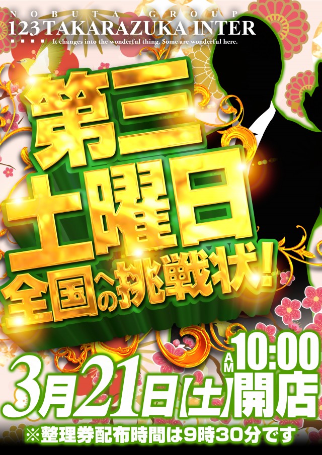 1位 3月7日(土) 2位 3月21日(土) 3位 3月13日(金)