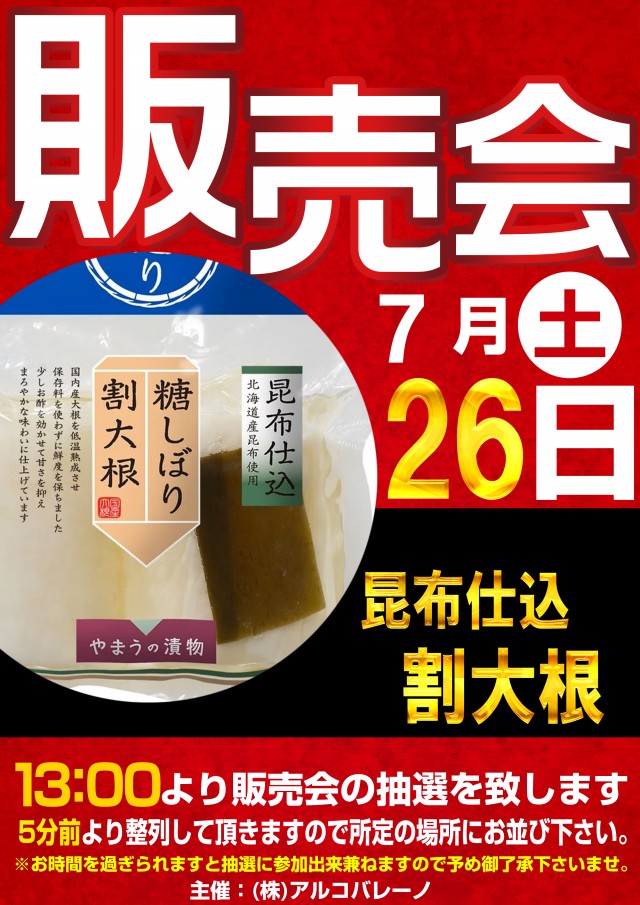 7月26日(土)【昆布仕込割大根販売会開催予定】🌈🌈