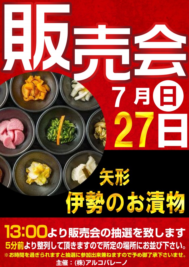 7月27日(日)【矢形伊勢のお漬物販売会開催予定】🌈🌈🌈