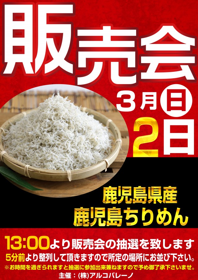 3月2日(日)【鹿児島ちりめん販売会開催】予定🌈🌈