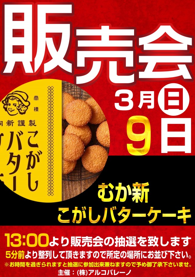 3月9日(日)【こがしバターケーキ販売会開催予定】🌈