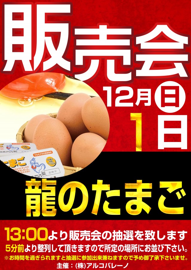 12月3日(日)【整理券配布時間変更】配布時間は9時30分🌈
