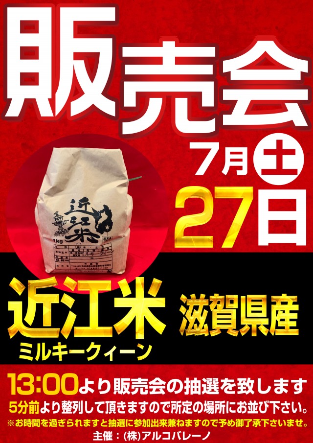 明日【近江米ミルキィクイーン販売会】開催予定🌈🌈