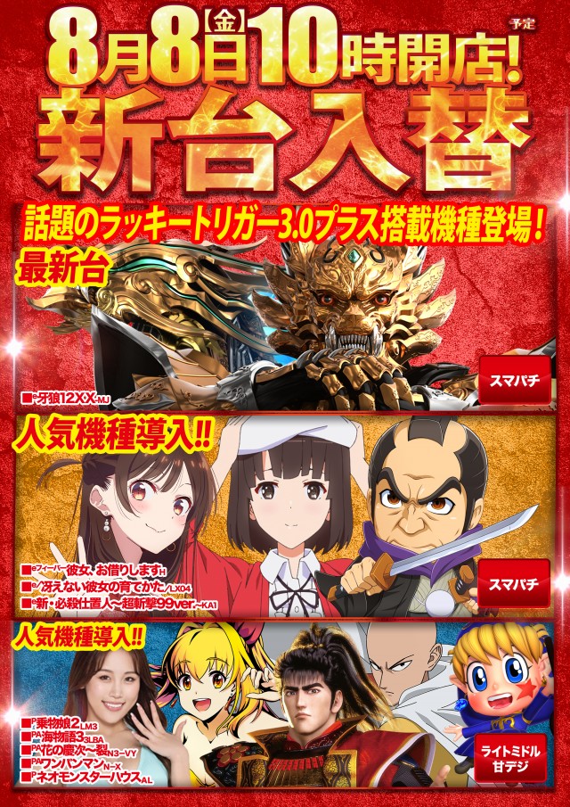 9月12日(金)【新台入替予定】話題の2機種導入します!