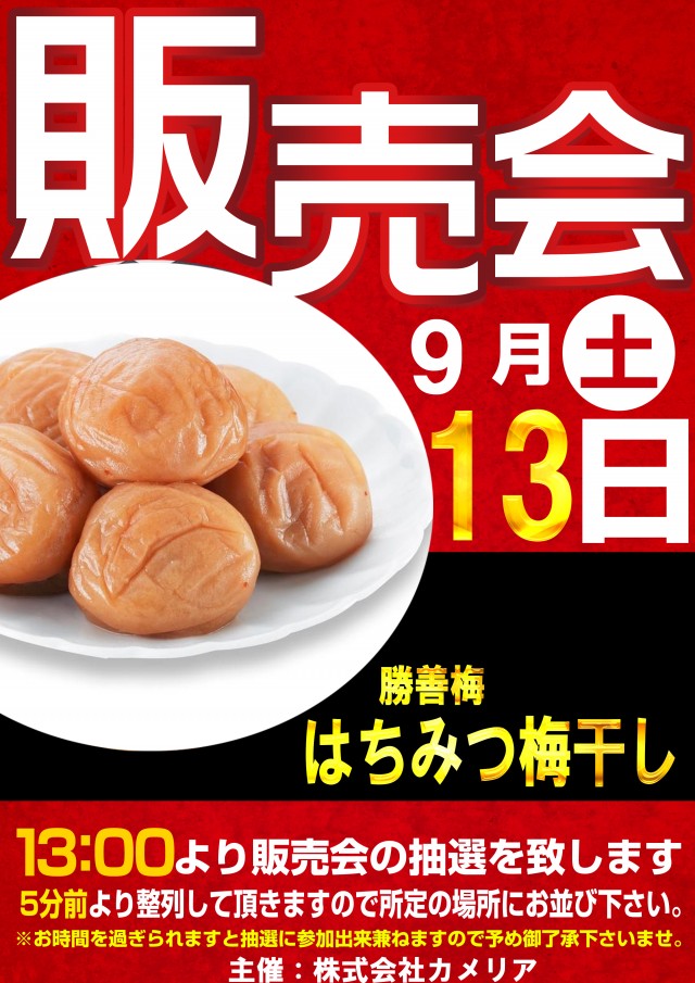 9月13日(土)【勝喜梅はちみつ梅干し販売会開催予定】