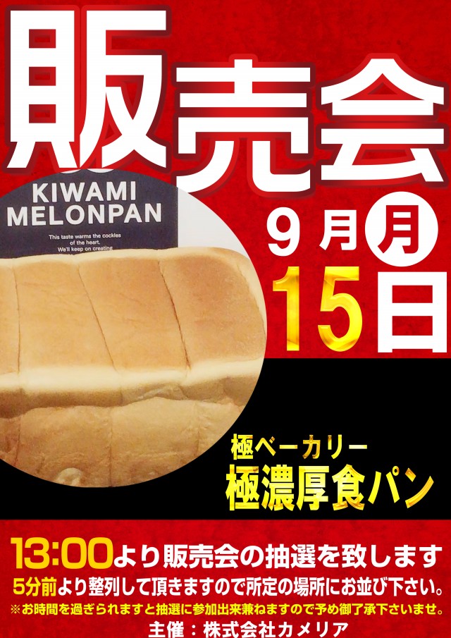9月15日(月)【極濃厚食パン販売会開催予定】